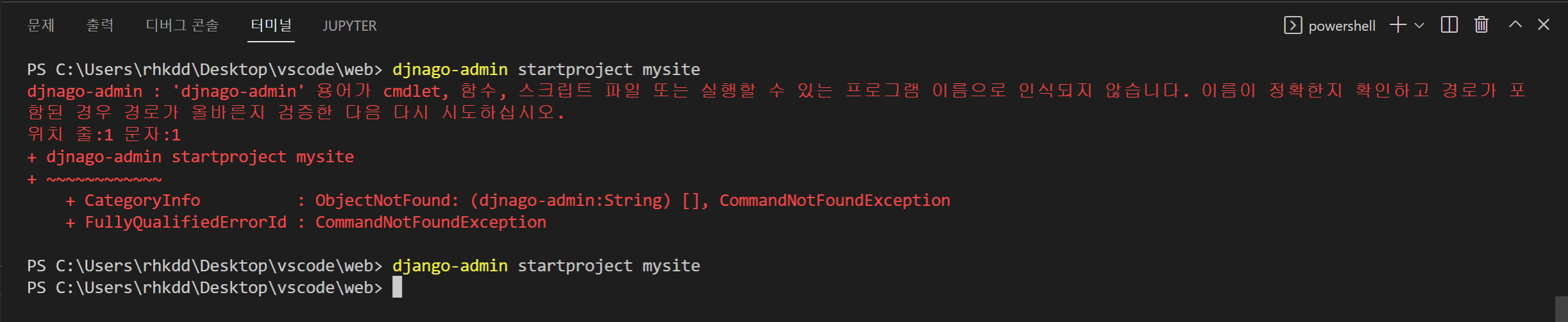 8. django-admin을 통한 프로젝트 생성 (성공)