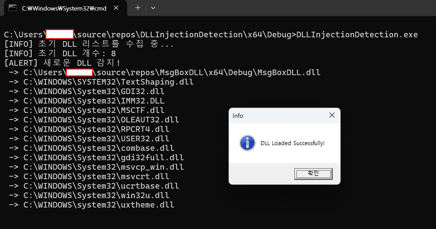 std::cout << "[ALERT] 새로운 DLL 감지!" << std::endl;